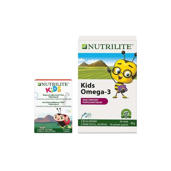 Детский комплект для поддержки иммунитета Nutrilite™ был специально разработан, чтобы обеспечить детям ежедневную дозу необходимых питательных веществ – включая витамин D для поддержания их иммунной системы*.  Каждый пакетик-стик Kids Immunity Support* Plus содержит витамин D, витамин C, цинк и молочнокислые бактерии. Омега-3 для детей – это вкусные жевательные пастилки, содержащие жирные кислоты класса омега-3 из рыбьего жира, полученного экологичным путем, а также витамин D. Восполните потенциальный дефицит нутриентов в рационе вашего ребенка с помощью ключевых питательных веществ в составе высококачественных диетических добавок с превосходным вкусом, который им точно понравится! * Витамин D способствует нормальному функционированию иммунной системы у детей.